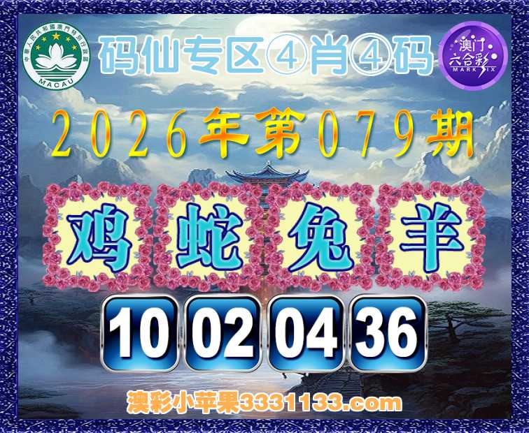 079期:『码仙专区』 ④肖④码【鸡蛇兔羊】【10.02.04.36】开:00准